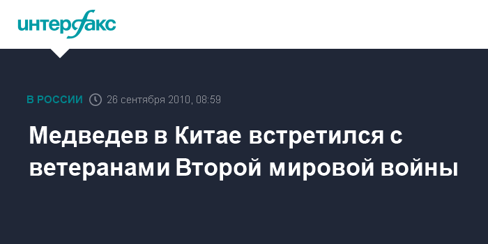 Далянь (Китай). 26 сентября. ИНТЕРФАКС - Президент РФ Дмитрий Медведев, побывавший на Российском воинском мемориальном кладбище в Люйшуне, также пообщался с российскими и китайскими ветеранами Второй Мировой войны.