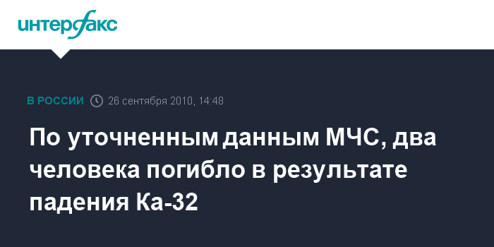 По уточненным данным МЧС, два человека погибло в результате падения Ка-32