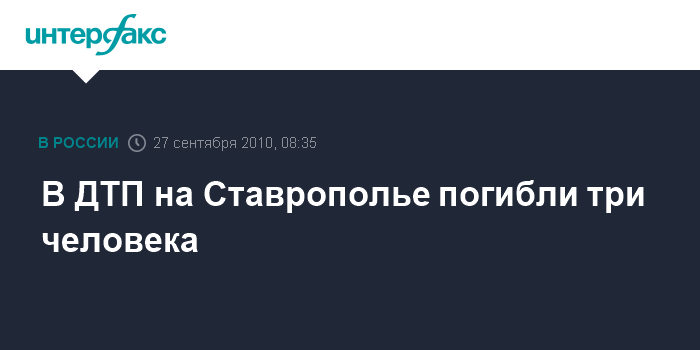 Ростов-на-Дону. 27 сентября. INTERFAX.RU - Жертвами ДТП на Ставрополье стали три человека, сообщили агентству "Интерфакс" в пресс-службе Южного регионального центра МЧС России.