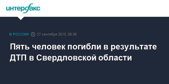 "В 21:22 поступило сообщение о ДТП на 30 км трассы Серов-Ивдель. Автомобиль Тойота Авенсис столкнулся с автомобилем КАМАЗ, в результате ДТП погибли 5 человек - водитель и пассажиры Тойоты, двое мужчин и трое женщин. Водитель Камаза не пострадал", - сообщили агентству "Интерфакс-Урал" в пресс-службе управления МЧС по Свердловской области.