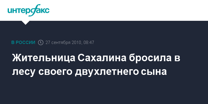 Южно-Сахалинск. 27 сентября. ИНТЕРФАКС - ДАЛЬНИЙ ВОСТОК - В отношении 26-летней жительницы поселка Буюклы Смирныховского района Сахалинской области возбуждено уголовное дело по ст. 125 УК РФ (заведомое оставление без помощи малолетнего ребенка, находящегося в опасном для жизни или здоровья состоянии).