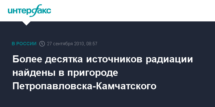 Петропавловск-Камчатский. 27 сентября. INTERFAX.RU - Сотрудники УФСБ России по Камчатскому краю обнаружили в лесополосе Петровской сопки в районе смотровой площадки Петропавловска-Камчатского более десятка источников радиоактивности.