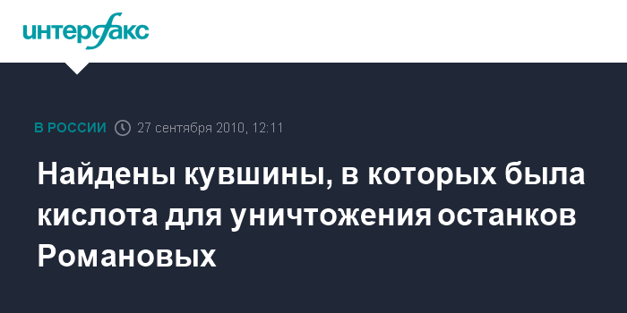 Найдены кувшины, в которых была кислота для уничтожения останков Романовых