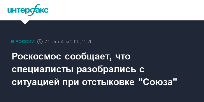 Роскосмос сообщает, что специалисты разобрались с ситуацией при отстыковке "Союза"