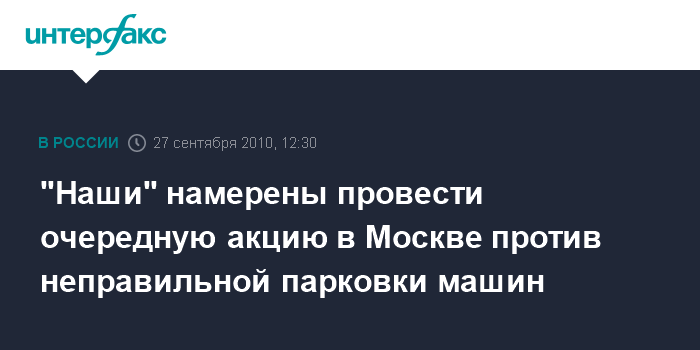 Москва. 27 сентября. ИНТЕРФАКС - Активисты молодежного движения "Наши" в ходе очередной акции обещают обклеить около 3 тыс неправильно припаркованных автомобилей в центре Москвы.