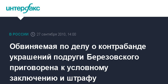 Обвиняемая по делу о контрабанде украшений подруги Березовского приговорена к условному заключению и штрафу