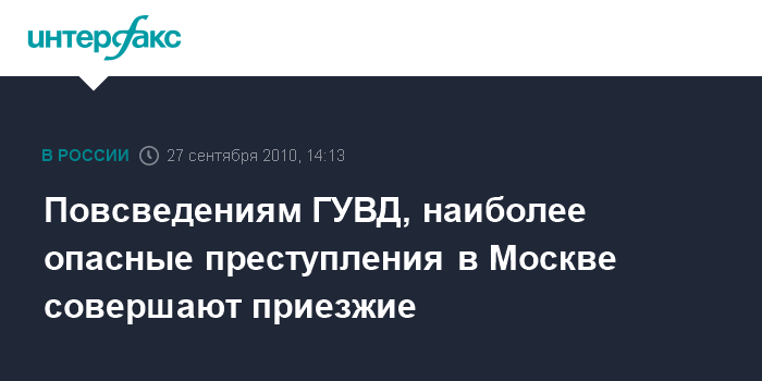 Повсведениям ГУВД, наиболее опасные преступления в Москве совершают приезжие