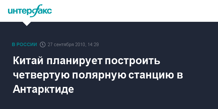 Пекин. 27 сентября. INTERFAX.RU - Китай планирует построить новую научно-исследовательскую станцию в Антарктиде, которая станет уже четвертой, сообщает в понедельник китайская газета "Чайна Дейли" со ссылкой на главное океанографическое управление КНР.
