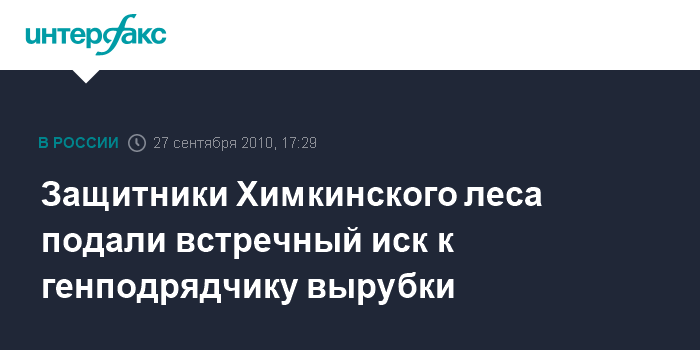 Москва. 27 сентября. INTERFAX.RU - Движение "В защиту Химкинского леса" подало встречный иск к ООО "Теплотехник" на 170 млн рублей за нанесение ущерба лесному массиву при строительстве трассы Москва - Санкт-Петербург.
