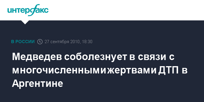 Медведев соболезнует в связи с многочисленными жертвами ДТП в Аргентине