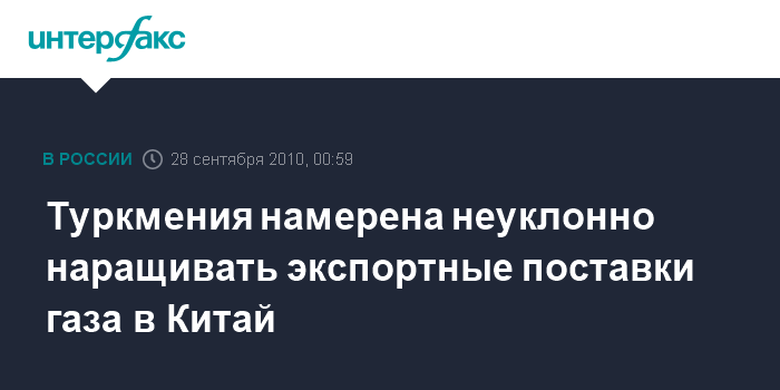 Туркмения намерена неуклонно наращивать экспортные поставки газа в Китай