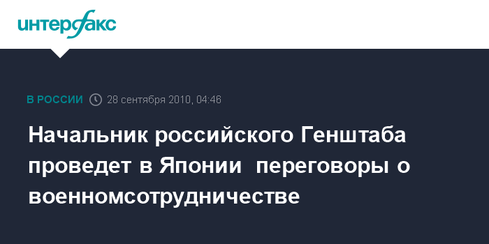 Начальник российского Генштаба проведет в Японии переговоры о военномсотрудничестве