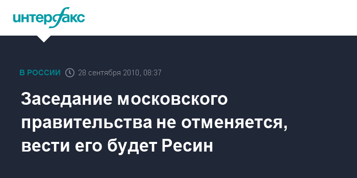 Заседание московского правительства не отменяется, вести его будет Ресин