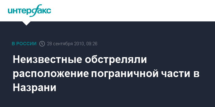 Назрань. 28 сентября. INTERFAX.RU - В центре Назрани (Ингушетия) в течение пяти минут неизвестные лица в понедельник обстреливали из гранатомета и автоматического оружия расположение пограничной части УФСБ РФ по Ингушетии.