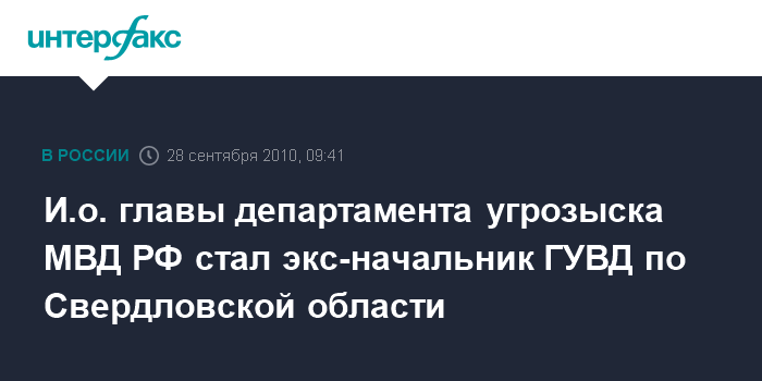 И.о. главы департамента угрозыска МВД РФ стал экс-начальник ГУВД по Свердловской области