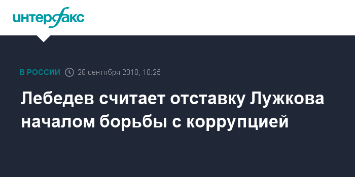 Лебедев считает отставку Лужкова началом борьбы с коррупцией