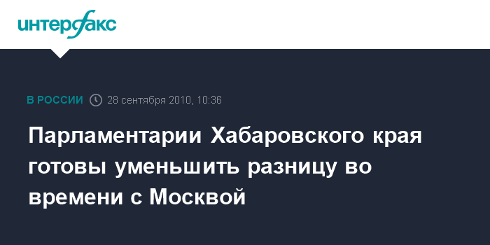 Хабаровск. 28 сентября. INTERFAX.RU - Депутаты Законодательной Думы Хабаровского края на заседании во вторник рассмотрели варианты сокращения часовых поясов между Хабаровским краем и столицей РФ.