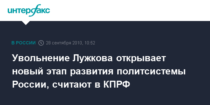 Увольнение Лужкова открывает новый этап развития политсистемы России, считают в КПРФ