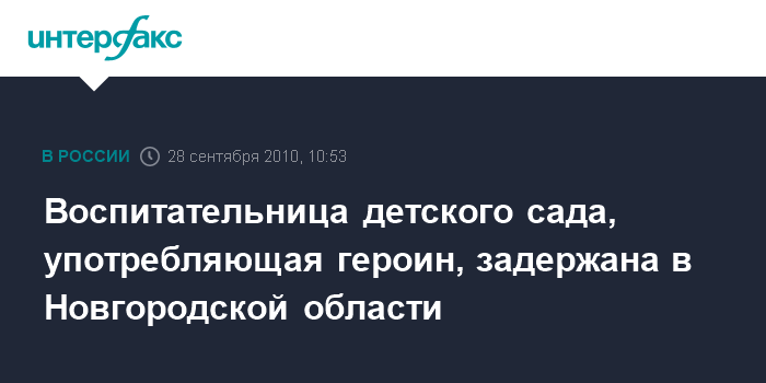 Великий Новгород. 28 сентября. INTERFAX.RU - Новгородские наркополицейские задержали в Валдае воспитательницу детского сада, употребляющую героин, сообщил "Интерфаксу" представитель пресс-службы регионального УФСКН.