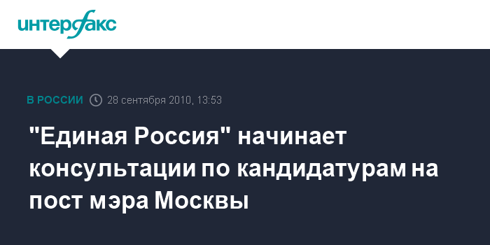 "Единая Россия" начинает консультации по кандидатурам на пост мэра Москвы