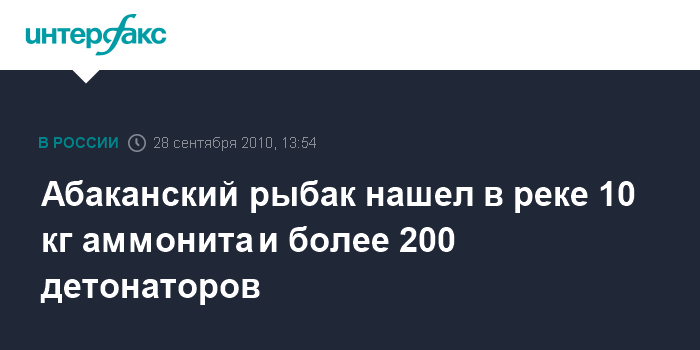 Абакан. 28 сентября. INTERFAX.RU - Ведется доследственная проверка по факту обнаружения во вторник жителем Абакана, рыбачившим на местной реке, мешка с взрывчаткой и детонаторами.