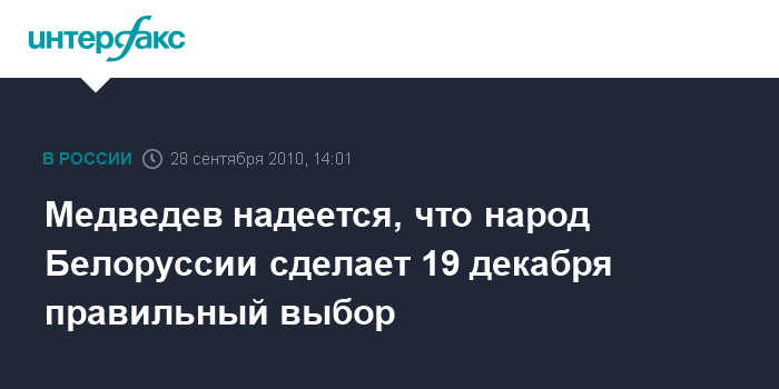 Медведев надеется, что народ Белоруссии сделает 19 декабря правильный выбор