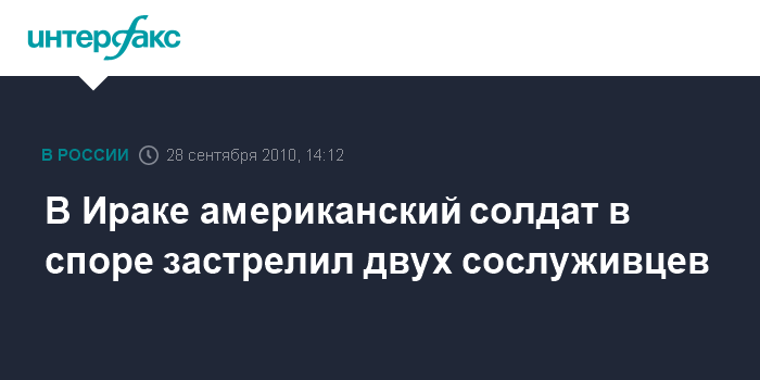 Багдад. 28 сентября. INTERFAX.RU - Двое американских солдат стали жертвами ссоры в Ираке, еще один ранен, сообщило во вторник агентство ЭФЭ со ссылкой на представителя американского командования во вторник в Багдаде.