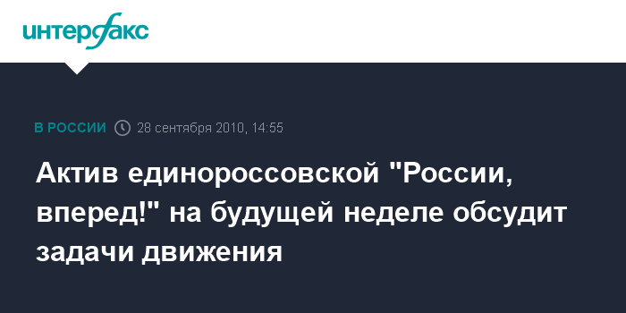 Актив единороссовской "России, вперед!" на будущей неделе обсудит задачи движения