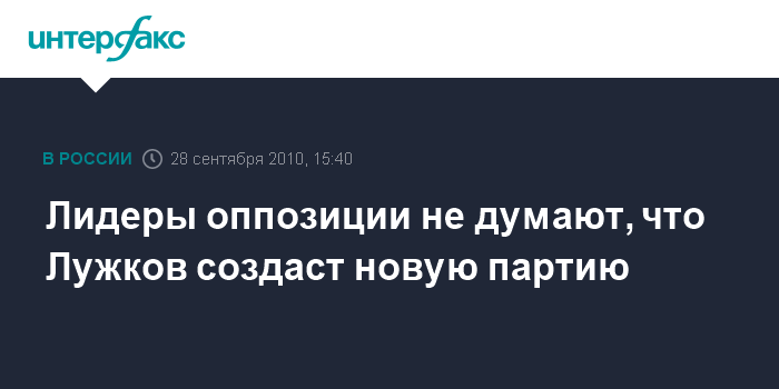 Москва. 28 сентября. INTERFAX.RU - Лидеры двух оппозиционных партий сомневаются, что бывший мэр Москвы Юрий Лужков, который выходит из "Единой России", будет создавать свою собственную политическую организацию.