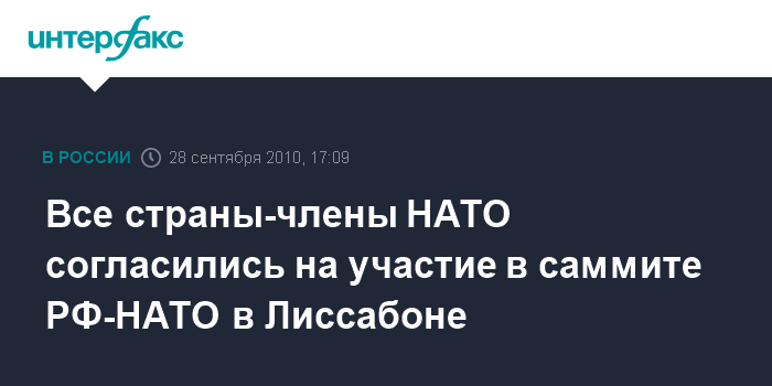 Все страны-члены НАТО согласились на участие в саммите РФ-НАТО в Лиссабоне