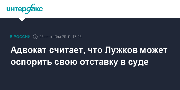 Адвокат считает, что Лужков может оспорить свою отставку в суде
