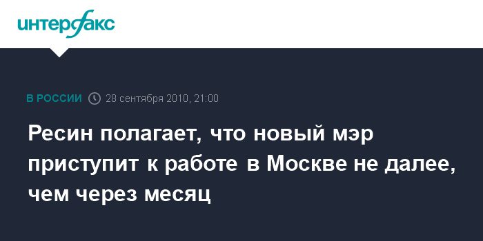 Ресин полагает, что новый мэр приступит к работе в Москве не далее, чем через месяц