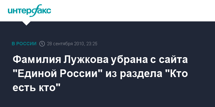 Как передает "Интерфакс" вечером во вторник, на официальном сайте партии в разделе "Кто есть кто", фамилия Ю.Лужкова уже не значится в числе сопредседателей высшего совета партии "Единой России", а также в членах бюро высшего совета партии.