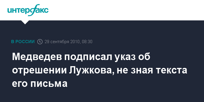 Медведев подписал указ об отрешении Лужкова, не зная текста его письма