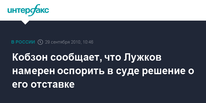 Москва. 29 сентября. INTERFAX.RU - Экс-мэр Москвы Юрий Лужков намерен обжаловать решение об отрешении его от должности в суде, сообщил "Интерфаксу" близкий друг бывшего мэра Москвы, депутат Госдумы, певец Иосиф Кобзон.