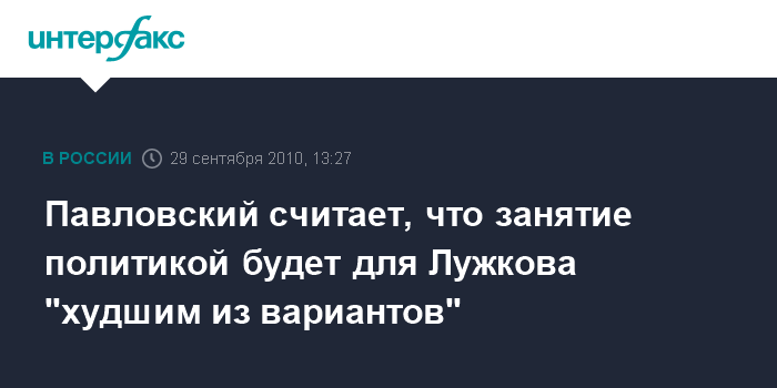 Павловский считает, что занятие политикой будет для Лужкова "худшим из вариантов"