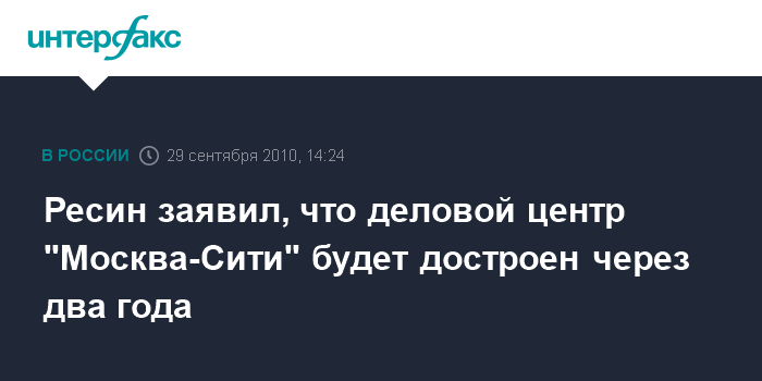 Москва. 29 сентября. INTERFAX.RU - Сооружение Международного делового центра "Москва-Сити" планируется полностью завершить в течение двух лет, сообщил врио мэра Москвы Владимир Ресин.