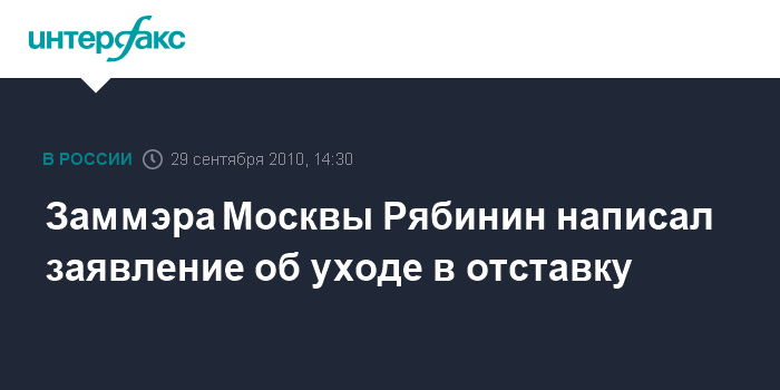 Заммэра Москвы Рябинин написал заявление об уходе в отставку