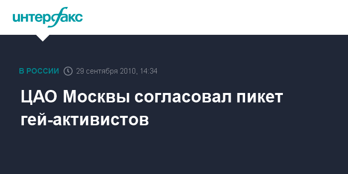 Москва. 29 сентября. INTERFAX.RU - Префектура Центрального административного округа Москвы согласовала проведение публичного мероприятия гей-активистов с призывом к бойкоту авиакомпании Swiss Airlines, сообщили "Интерфаксу" в префектуре в среду.