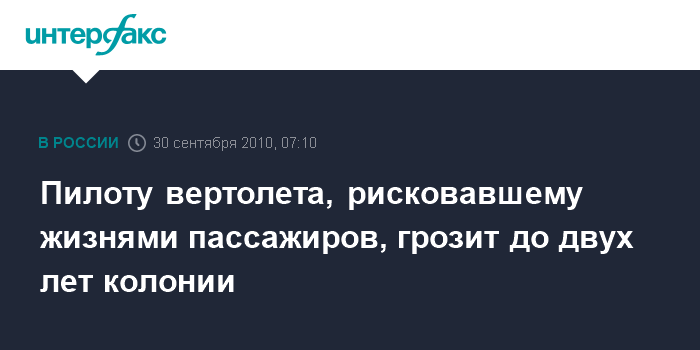 Пилоту вертолета, рисковавшему жизнями пассажиров, грозит до двух лет колонии