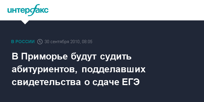 В Приморье будут судить абитуриентов, подделавших свидетельства о сдаче ЕГЭ