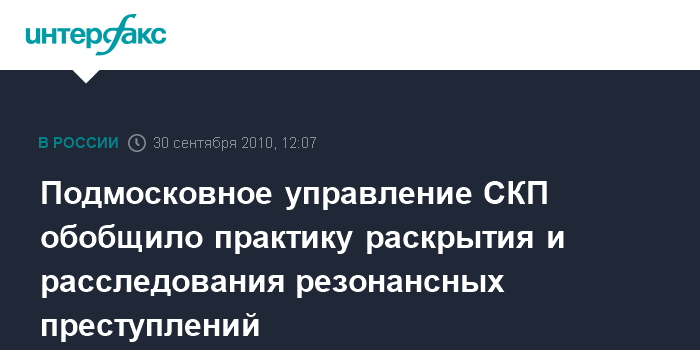 Москва. 30 сентября. INTERFAX.RU – Подмосковное управление СКП обобщило практику раскрытия и расследования преступлений, получивших большой общественный резонанс, сообщает в четверг сайт Следственного комитета.