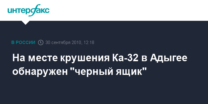 Краснодар. 30 сентября. INTERFAX.RU - Найден "черный ящик" вертолета Ка-32, потерпевшего крушение в минувшее воскресенье в районе горы Фишт на границе Краснодарского края и Адыгеи, сообщил руководитель Краснодарского межрайонного следственного отдела Южного следственного управления на транспорте Александр Потоцкий.