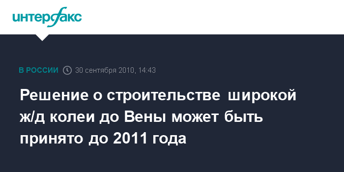 Братислава. 30 сентября. INTERFAX.RU - Решение о строительстве ширококолейной железной дороги от Кошице (Словакия) до Братиславы (Словакия) и Вены (Австрия) может быть принято к концу 2010 года, сообщил президент ОАО "Российские железные дороги" (РЖД) Владимир Якунин на конференции в Братиславе.