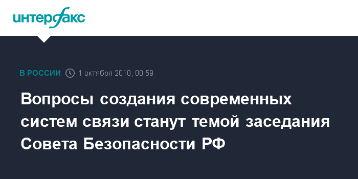 Как сообщили "Интерфаксу" в аппарате Совбеза, заседание будет посвящено вопросам создания современных систем связи для нужд обороны и безопасности страны, а также поддержания правопорядка.