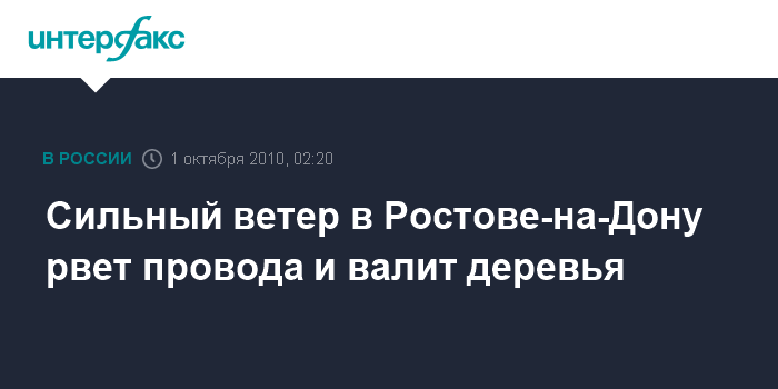 "На протяжении двух часов в Ростове-на-Дону скорость ветра достигает 20 м/сек. Отмечено большое количество поломанных деревьев, а также имеются обрывы линии электропередач", - сообщили агентству "Интерфакс-Юг" в правоохранительных органах Ростовской области.