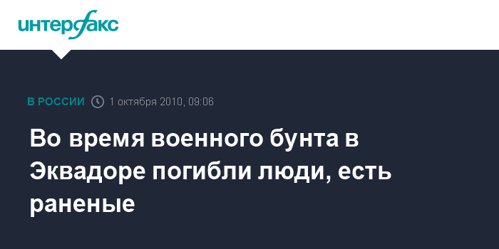 Кито. 1 октября. INTERFAX.RU - Министерство обороны Эквадора подтвердило в пятницу агентству ЭФЭ информацию о том, что при попытке бунта военных в стране были человеческие жертвы, не уточнив при этом их количество.