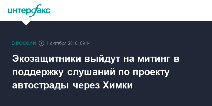 1 октября. INTERFAX.RU - Защитники Химкинского леса организуют митинг в поддержку решения главы государства о приостановке строительства трассы Москва-Петербург и проведении общественных слушаний.