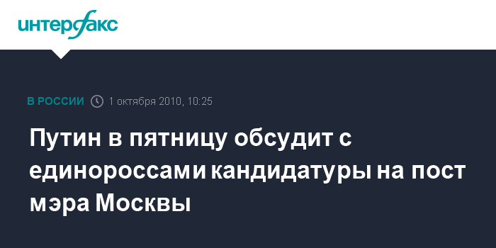 Путин в пятницу обсудит с единороссами кандидатуры на пост мэра Москвы