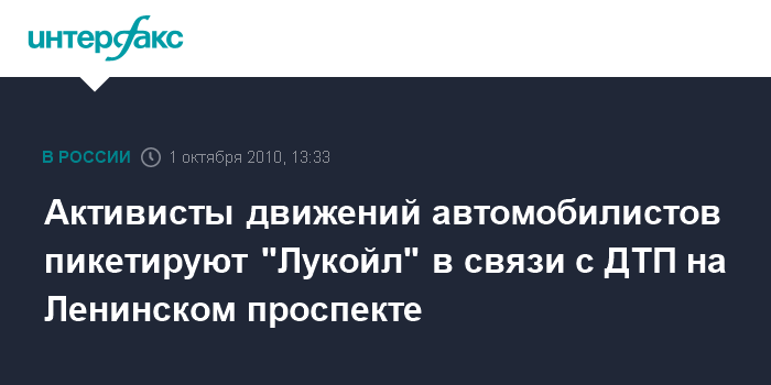 Москва. 1 октября. INTERFAX.RU - Несколько представителей движений автомобилистов провели в пятницу у здания НК "ЛУКОЙЛ" в Москве пикет с требованием к руководству компании публично извиниться за обвинения водителя "Ситроена" в виновности в ДТП на Ленинском проспекте, сообщил лидер Федерации автовладельцев (ФАР) Сергей Канаев.